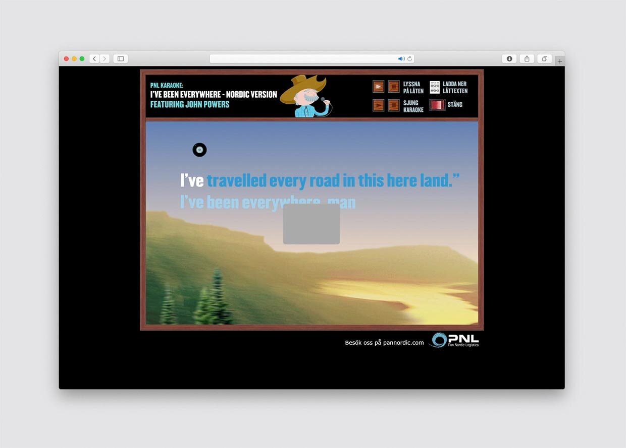 Pan Nordic Logistics (PNL) was the Nordic regions leading logistics company on the parcel market. They wanted to promote their Nordic sales tour. It was done by producing a first ever Nordic version of the classic song: “I’ve been Everywhere”. The song was used in radio spots, as a sales give-away record and as a karaoke sing-along application.